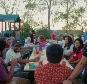 Neighbors in the Miller Orchard neighborhood gather to share their park with each other!